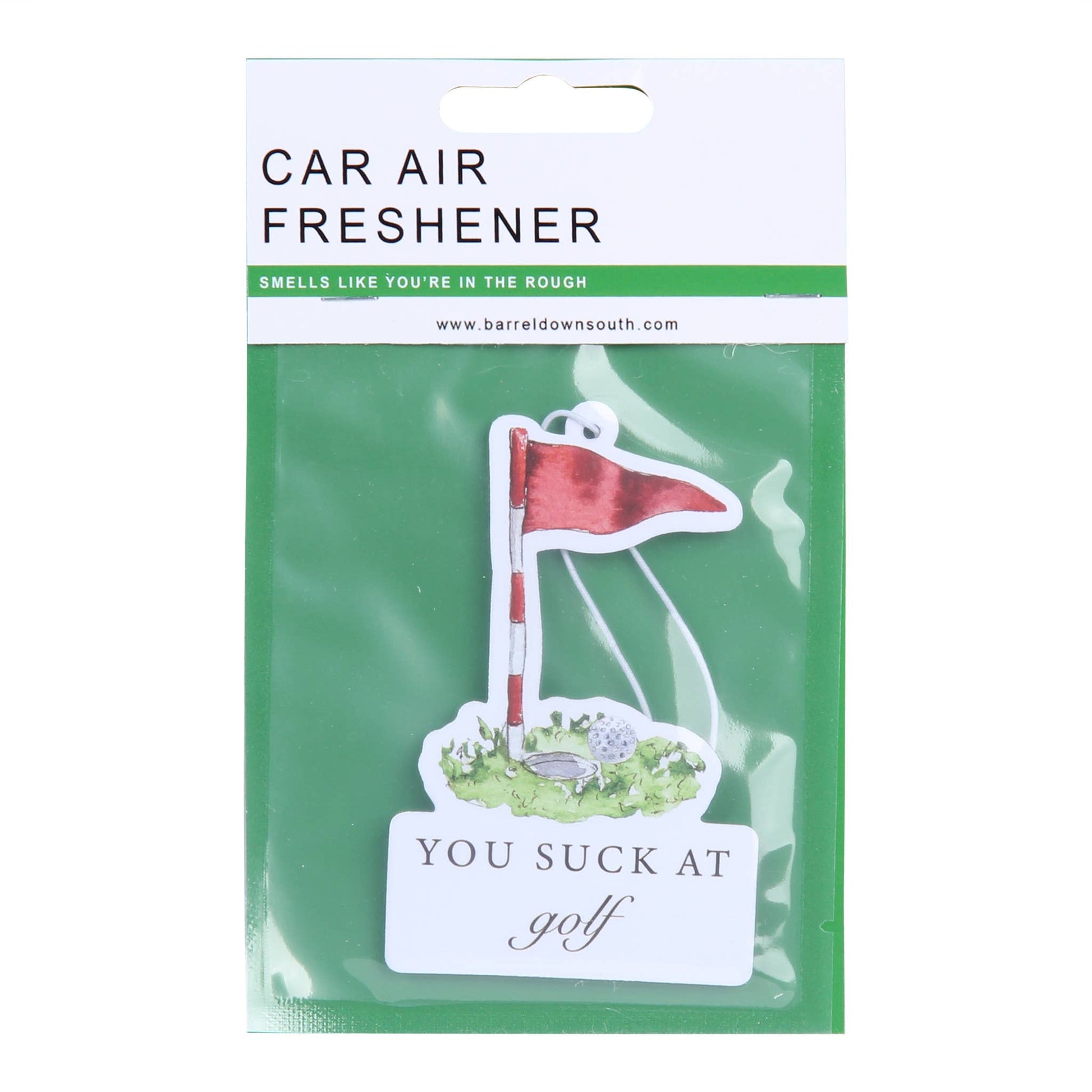 Experience a fresh burst of fragrance wherever you go with the You Suck At Golf Car Air Freshener from Barrel Down South. This compact and practical accessory fills your space with a pleasant aroma, making every journey enjoyable. Ideal for use in your car, at home, or in the office. Infused with the southern charm and quality craftsmanship that Barrel Down South is renowned for. Keep it fresh, keep it southern!